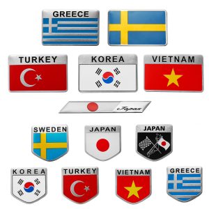 3D Aluminum Alloy Car Auto Body Sticker Decals Turkey/Sweden/Greece/Korea/Vietnam/Japan Flag