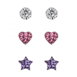 Sterling Silver 925 Cubic Zirconia Shape Stud Earrings – Pack Of 3