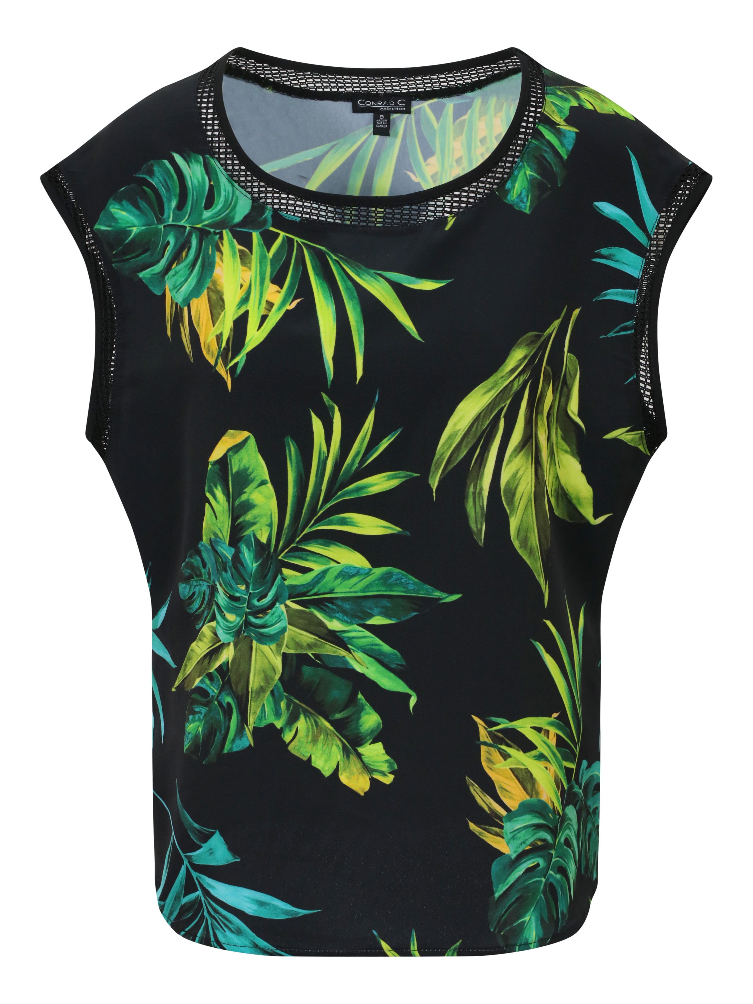 Conrad C Navy/green Tropical Print Top with Mesh Neckline