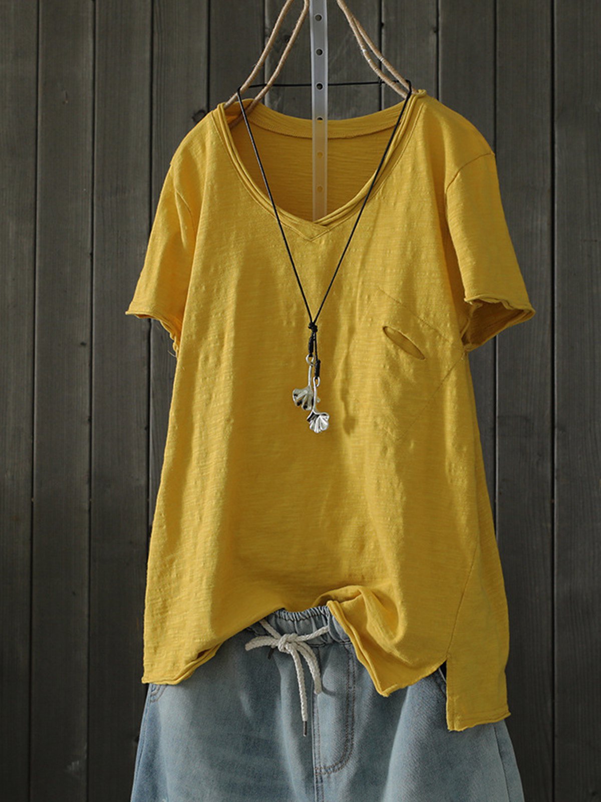 Cotton-Blend Short Sleeve Casual T-Shirts – Noracora