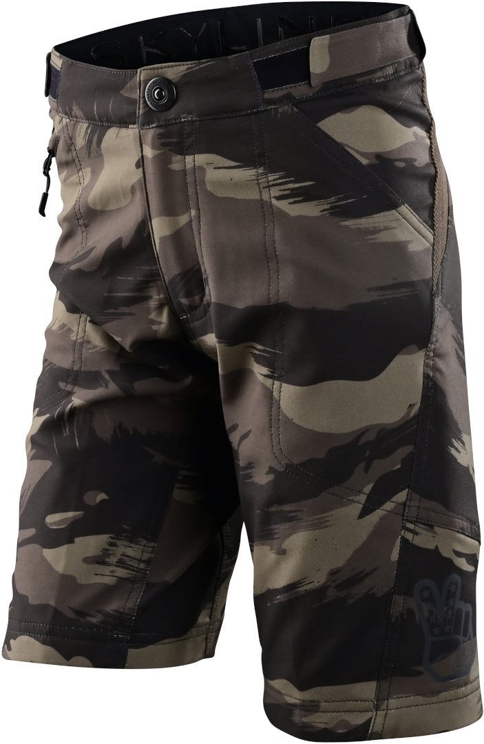 Troy Lee Designs Skyline Shell Brushed Camo Youth Bicycle Shorts, green-multicolored, Size 24, green-multicolored, Size 24