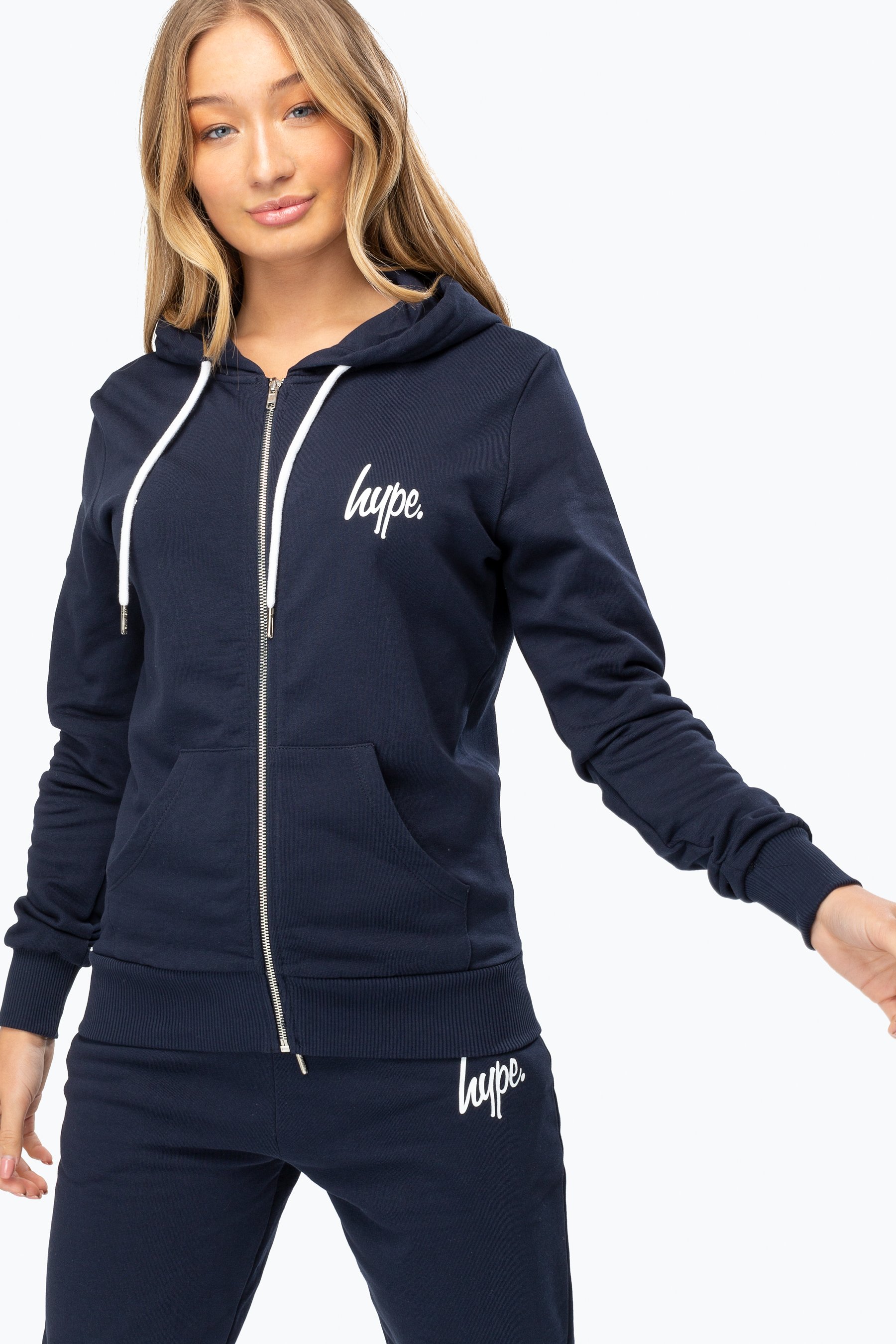 Hype Navy White Script Womens Navy/white Zip Hoodie | Size 6
