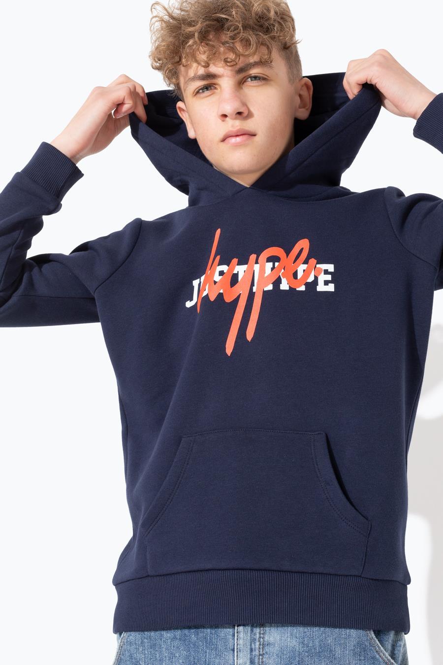 Hype Navy Double Logo Print Kids Pullover Hoodie | Size 3/4Y