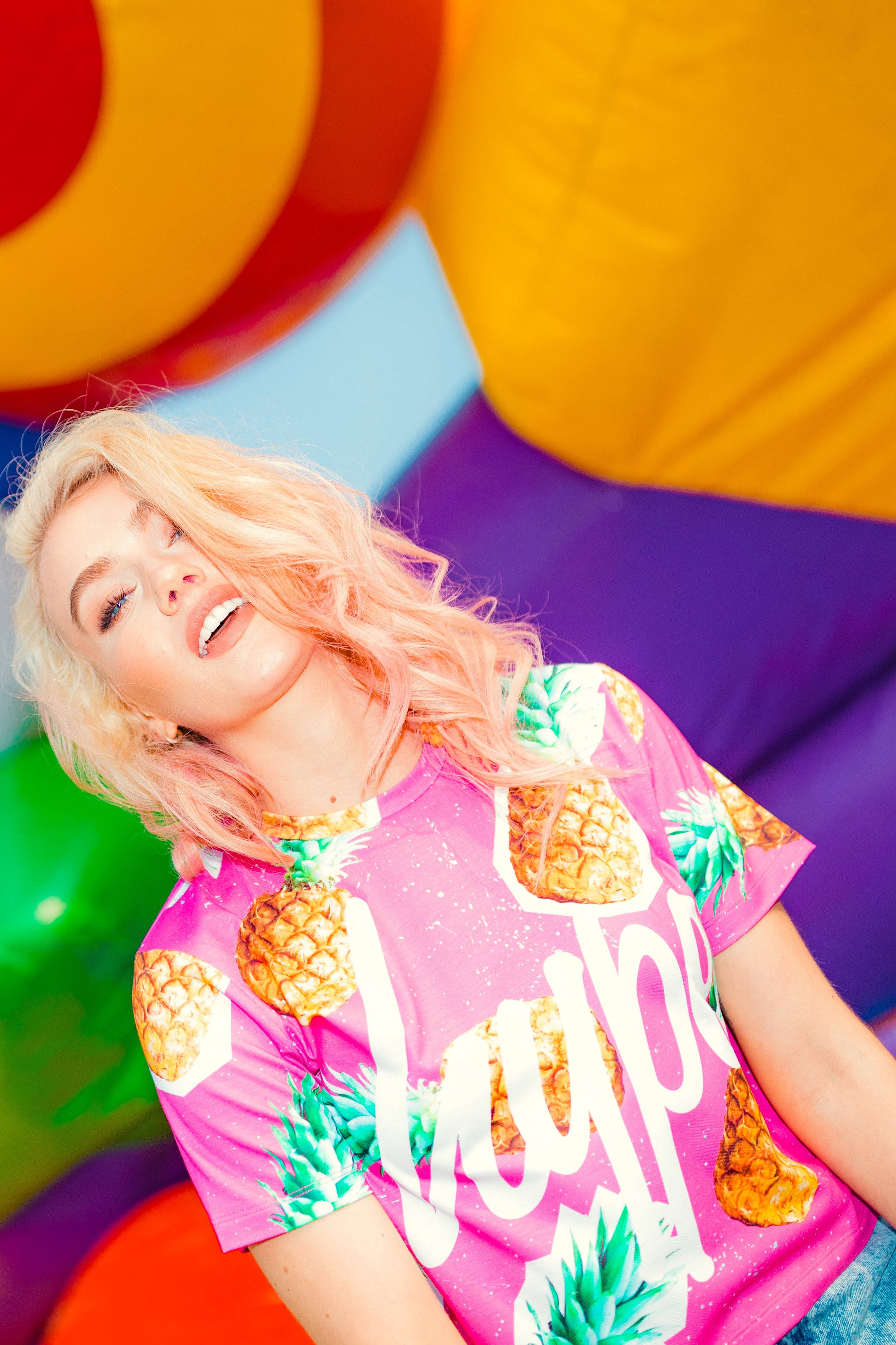 Hype Pineapple Womens Crop Pink/Multi T-Shirt | Size 12