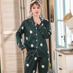 JRMISSLI Satin Silk Women's Pajamas Sets 2019 New Long Sleeve Pyjamas Suit Female 2 Pcs Home Clothes Dot Print Pijama Mujer