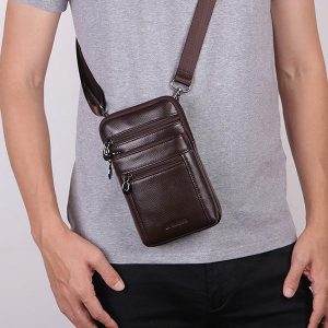 Men Business Casual Genuine Leather Waist Bag Crossbody Bag