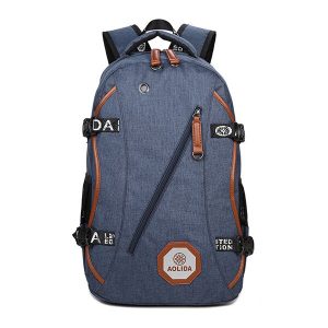 Men Canvas Multifunction Sport Bag Casual Rucksack 17″ Basketball Backpack with USB Charging Port