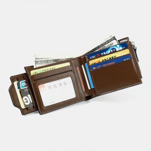 Men Genuine Leather Tri-fold Short Wallet Retro Wallet