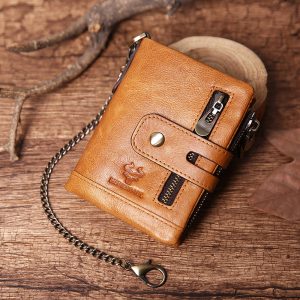 Men Genuine Leather Chain RFID Anti-scanning Zipper Wallet