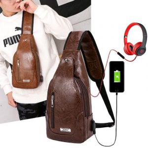 Men Multifunctional USB Casual Chest Bag Crossbody Bag