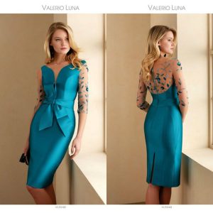 Mother Of The Bride Dresses V Neck Appliqued 3/4 Long Sleeves Wedding Guest Gown Sash Ruffle Knee Length Back Split Mother Gown
