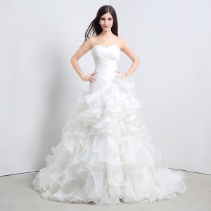 New Sexy White Cheap Organza Mermaid Wedding Dresses 2017 Appliques Lace Up Wedding Party Bridal Gowns Stock Size 6-16 QC336