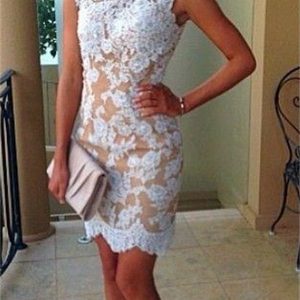 New Vintage 2021 Cocktail Es High Collar White Lace Champagne Lining Short Prom Party Backless Appliques Gowns Summer ANMP