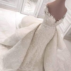 New Luxury 2021 Ruffles Mermaid Es Lace Off the Shoulder Chapel Bridal Gowns with Detachable Train Wedding 6X29