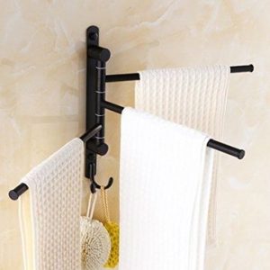 Black Swing Out Retro Towel Holder Bar 3-Bar Alloy Swivel Wall Mounted Hanger with Hooks