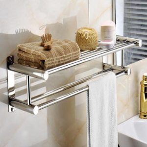 Double Chrome Wall Mounted Bathroom Towel Rack Stainless Steel Holder Storage Rack Shelf