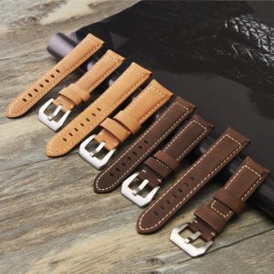 Mens Leather Watch Band Strap 22 24mm Dark / Light Brown for Panerai iWatch