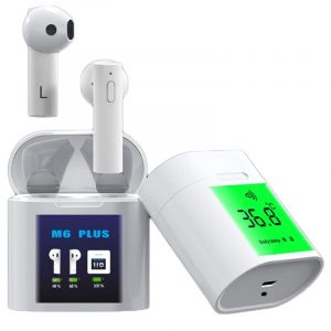 M6 Plus TWS Wireless Earphones Bluetooth 5.0 with Charging Case & Thermometer – White