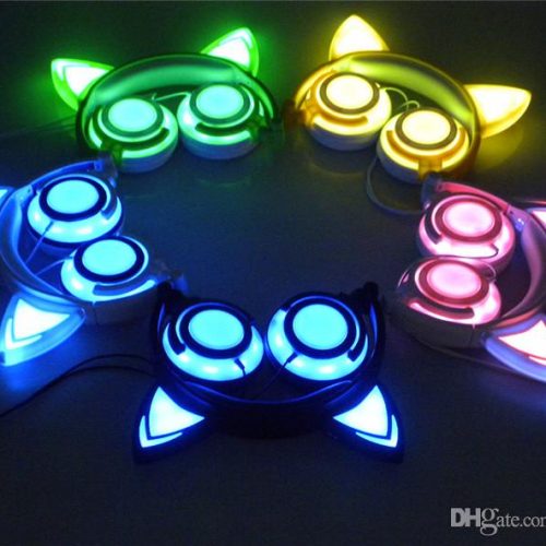 New rechargeable Cat Ear headphones Fully LED Lighting Kitty cats earphone Flashing bear Cosplay Headset Gaming Earphones for Adult and kids