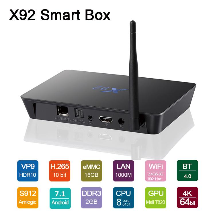 Android 7.1 X92 Smart TV Box Amlogic S912 Octa Core 2GB 16GB Dual Wifi HDMI 4K 1080P Streaming Media Player