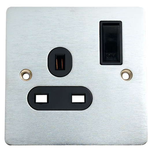 socket 13a 1g switched flat s/steel black insert Modern Sleek & slim profile with softly rounded corners blends with any d