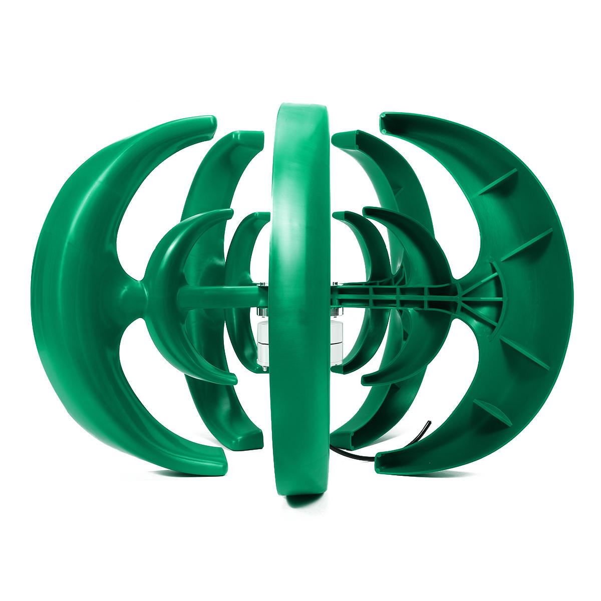 Packaging included:5 x Rotor blades1 x User ManualIncl .: mounting accessoriesNot included: mounting postSpecs:Color:RedRated power:800WMaximum power:1000WRated voltage:12V/24VStart up wind speed:2m/sRated wind speed:3m/sSurvival wind speed:45m/sTop net weight:12.0kgWheel diameter:0.9mBlades number:5Blades material:Nylon fiberGenerator:Three phase permanent magnet ac generatorControl system:ElectromagnetSpeed regulation:Automatically windwardWorking temperature:-40℃~80℃Characteristics:Lantern type DC hoop wind generator1. Low starting wind speed, high wind energy utilization, small size, elegant appearance, and low running vibration;2. The host adopts the latest design hoop connection in 2020, which is convenient, quick and easy to disassemble and save labor;3. The wind turbine blades are precision injection molded with a new process and designed with the latest aerodynamic principles. The wind speed at startup is lower. At the same time, the blades are made of high-strength PA66 and fiber-reinforced nylon. the amount;4. Use rare earth permanent magnet generator with special stator design to effectively reduce the resistance torque of the generator, and at the same time make the wind wheel and generator have a better matching and improve the stability of the unit;5. Added DC output indicator for generator, which is convenient for observing the operation of the fan and has the function of troubleshooting. The lights are eye-catching and beautiful;6.Using the built-in maximu