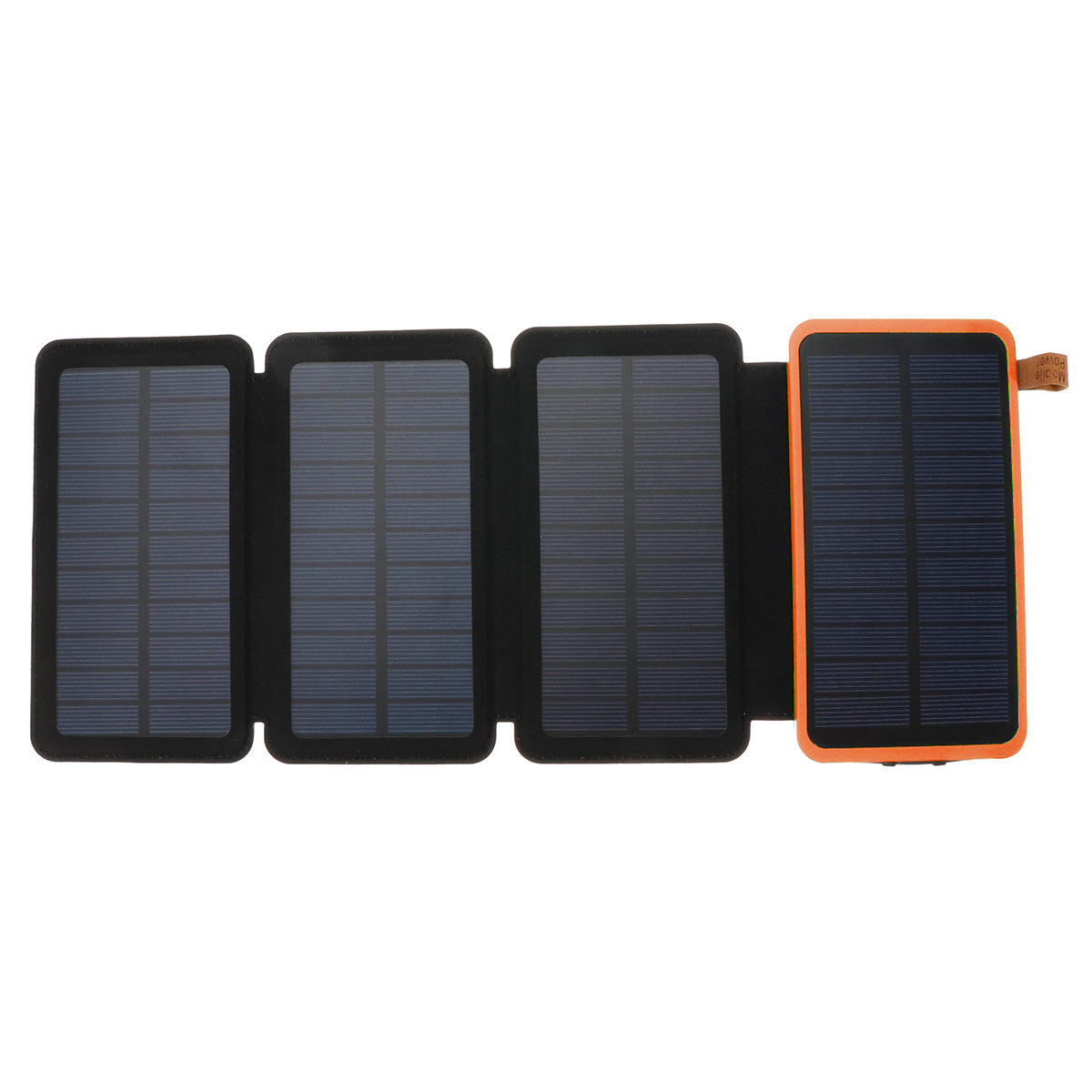 Package included:1 x Solar power bank1 x USB cable1 x User manualSpecification:1.Color:Black/Blue/Green/Orange/White2.Shell material: Plastic3.Size: 155mmX85mmX28mm4.Capacity: 20000mAh5.Input: 5V/1.5A6.Output: 5V/2A *27.Solar charging: 5V/200mAh8.Input interface:Micro USB9.Output interface: USB 2.0Features:1.Build-in full 20000mAh lithium polymer battery which charges via a 7W powerful mono-crystalline solar panel2.Leather cover, comfortable hand feel, Waterproof resistant dust proof and shock proof, ideal for outside use3.Foldable 4 solar panels, 4 times absorb light, high conversion rate, remarkable charging effect4.Emergency LED torch with Strong light/SOS(Slow flash,fast flash) mode5.Have LED Battery capacity indicator, fashion and beautiful6.Hidden dual USB/ Micro charging ports,2A efficient fast charger, 20%-30% faster than normal 5V 1A input power bank7. Dual Recharging Technologies, not only can be recharged by sunlight, but also by wall outlet or car charger via the DC port8.Built-in intelligent recognition voltage imported chip, can automatically identify the mobile phone, PSP, tablets, and other digital products charge9.Precise electronic board, have prevent overcharge, discharge, prevent leakage,10.Short circuit and high temperature resistant.11.Daily life waterproof, prevent splashing, but can not be immersed in water for a long time.Operating instructions:Long press to open or close the LEDSingle click to change the light mode