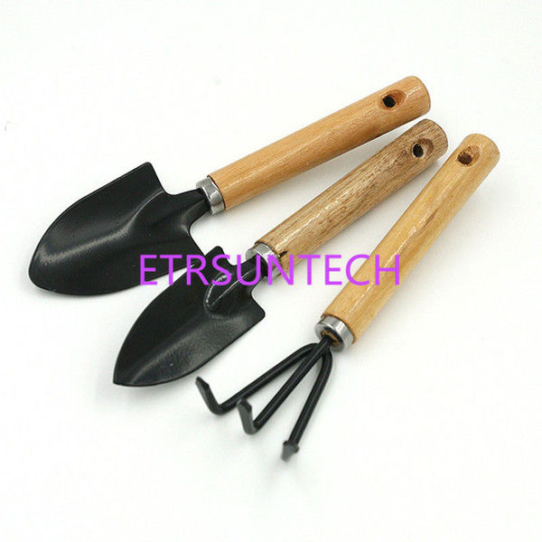 3Pcs/Set Mini Garden Hand Tool Kit Plant Gardening Shovel Spade Rake Trowel Wood Handle Metal Head Gardener QW8108