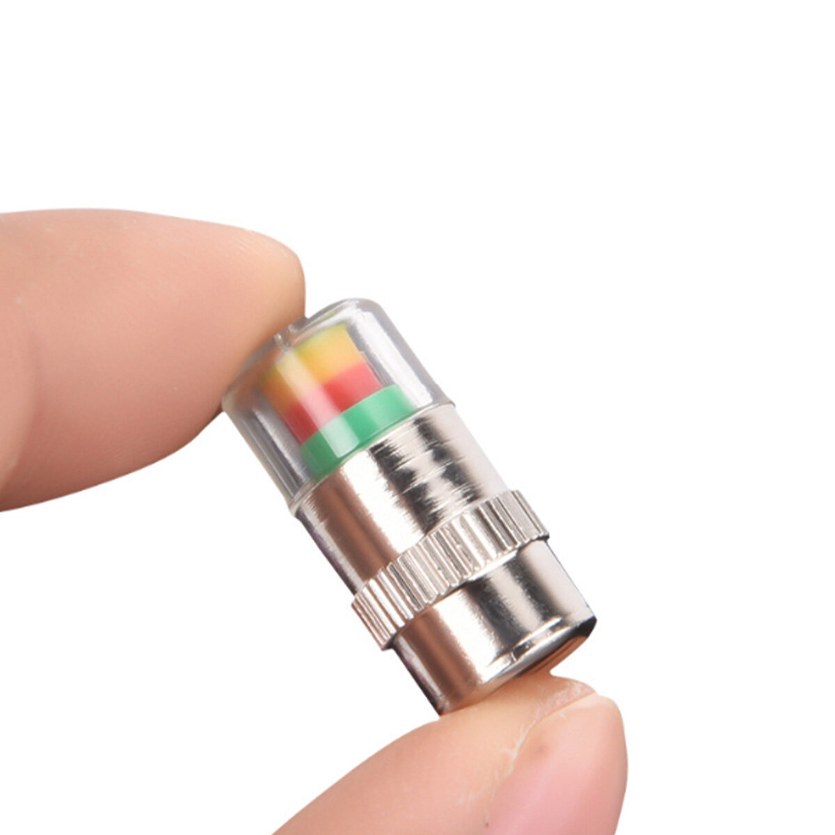 Description:1.  The tire pressure cap is an auxiliary tool for measuring tire pressure. The tire pressure cap is locked on the tire nozzle. The color change in the transparent cover is directly visualized to determine whether the tire pressure is sufficient. Troublesome.2.  This product is an auxiliary tool for measuring tire pressure. The user locks the tire pressure cap on the tire valve, and directly observes the color change in the cover to determine whether the tire pressure is sufficient. A 15% reduction in tire pressure will cause your car to increase fuel consumption by 6% and double tire wear, increasing the risk by 30%. The tire cap will remind you of this. Specifications:- Product name: tire pressure monitoring cap- Product material: stainless steel + PC- Scope: most models (tire pressure 2.5bar)- Features: 3-color display, automatic monitoring- Size: 9x9x23mm/0.4×0.4×0.9”  Features:● Real-time monitoring at a glance, always know the tire pressure.● All vehicles, suitable for cars, SUVs, MPVs, trucks, etc.● Transparent PC cover, tire pressure at a glance.● The three-color warning is intuitive and clear. three-color cylinder displays the tire pressure and is automatically measured.● Anti-skid gear design, gear inlay increases friction, anti-slip in water.Instructions for use:1. Normal: Under the condition of standard tire pressure, the transparent window should be green and the vehicle is running normally.2. Warning: The tire pressure is slightly lower than the s