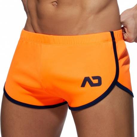 Sporty and sexy short made from lightweight and comfortable microfiber in neon color. Retro cut with side vents. Contrast trim. AD logo on the left leg. “20 Barcelona Summer” print on the buttocks. Covered elastic waistband.