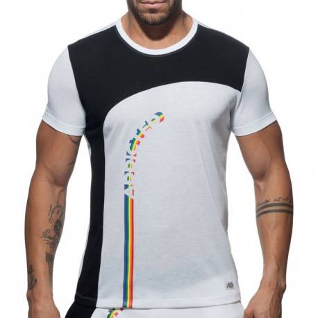 Sporty t-shirt made from a soft and lightweight blend of microfiber and viscose. Rainbow stripe embedding the Addicted logo. AD silicone label on the left hip.