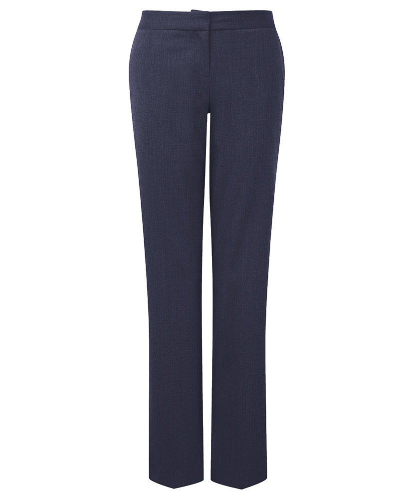 Straight leg Flat front Two hip pockets Two mock back pockets Concealed hook and bar front fastening Half front leg stretch lining 190gsm 54% polyester/44% wool/2% elastane Up to 40 deg Sizes 6 – 26 Inside leg: Short (S) 29ins Regular (R) 31ins Tall (T) 33ins Extra Tall (A) 36ins