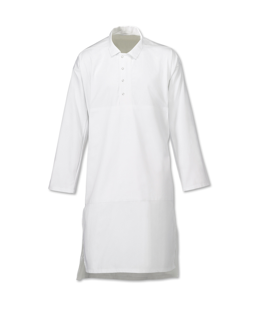 Two inset pocketsDouble thickness midriffStud fastening neckSide ventsMachine washable and industrially launderable300gsm 100% cotton