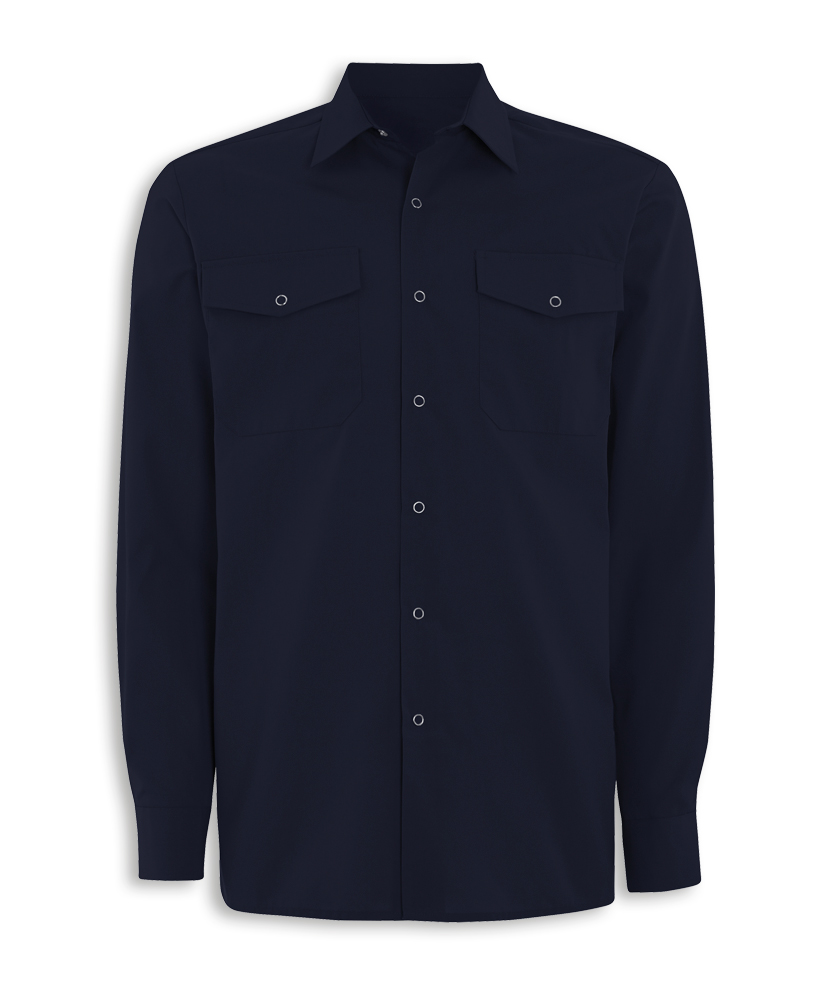 Two chest pockets left with pen divisionDouble back yoke96% cotton/4% Lycra®Back neck buggy liningMachine washable and industrially launderable150gsm 65% polyester/35% cotton
