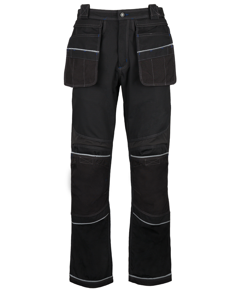 Stretch nylon side leg and knee panels for increased ease of movementRaised back waistband for comfort warmth and dignityElasticated side waistbandDouble belt loops to accommodate tool beltsTriple stitched seams for strengthTwo zip-off holster pocketsSilver reflective piping detailsSide leg mobile phone pocketTwo hip and two back zip pockets Hardwearing nylon kneepad pockets Nylon double layer kick hem Reinforced seat areaBack leg ruler and hammer pocket Main fabric: 270gsm moisture wicking rip stop 65% polyester 35% cotton Stretch panels: 275gsm 66% nylon 88% spandex Reinforcing panels: 210gsm 100% nylon 500D Up to 60 wash Inside leg: Short (S) 29ins Regular (R) 31ins Tall (T) 33ins Extra Tall (A) 36insWaist sizes 28 – 54insSize guide A