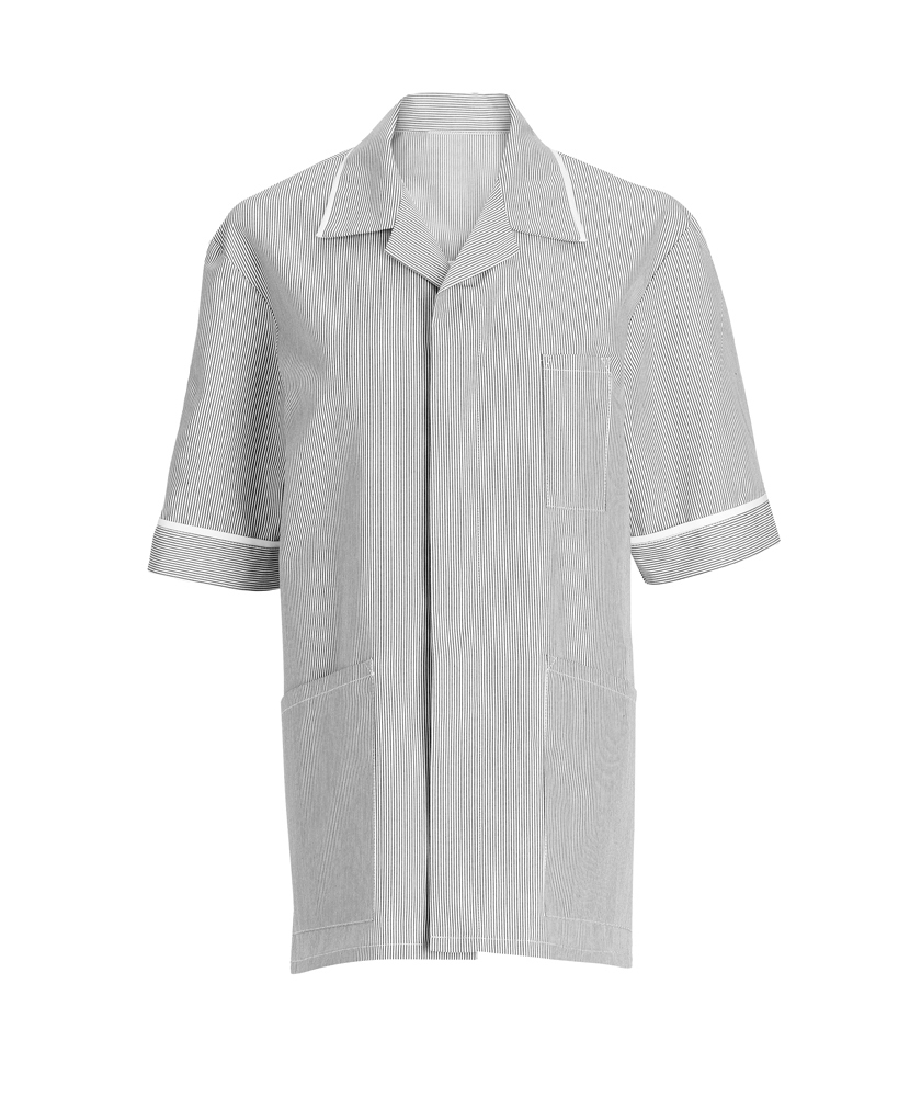Concealed zip frontTwo hip pockets one chest pen pocketDouble action back and ventsBack length 76 – 80cm (increasess with size)Machine washable and industrially launderable180gsm 67% polyester/33% cotton