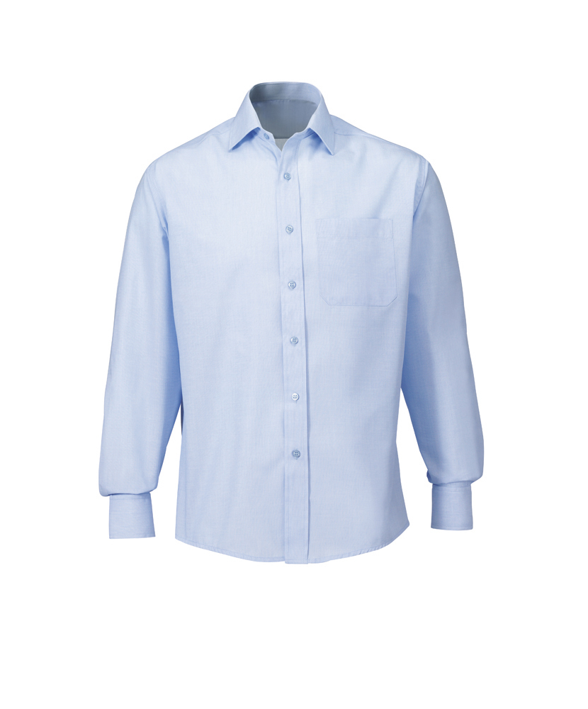 Classic collarChest pocketDouble back yokeLong sleeves with button cuffs100gsm 60% cotton/40% polyesterUp to 40 washSizes 14 – 20insBack length 78.5 – 83.5cm (increases with size)