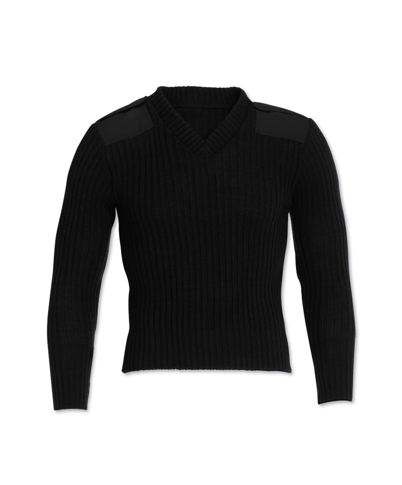UnisexV-neckPolyester/cotton shoulder and elbow patchesShoulder epaulettes with Velcro® fasteningHand wash only100% Pure new wool