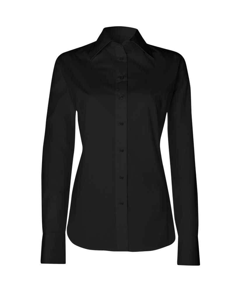 Feminine fitClassic collarThree button cuff100gsm 55% cotton/45% polyesterUp to 40 washSize 6 – 26Back length: 69 – 74cm (increases with size)