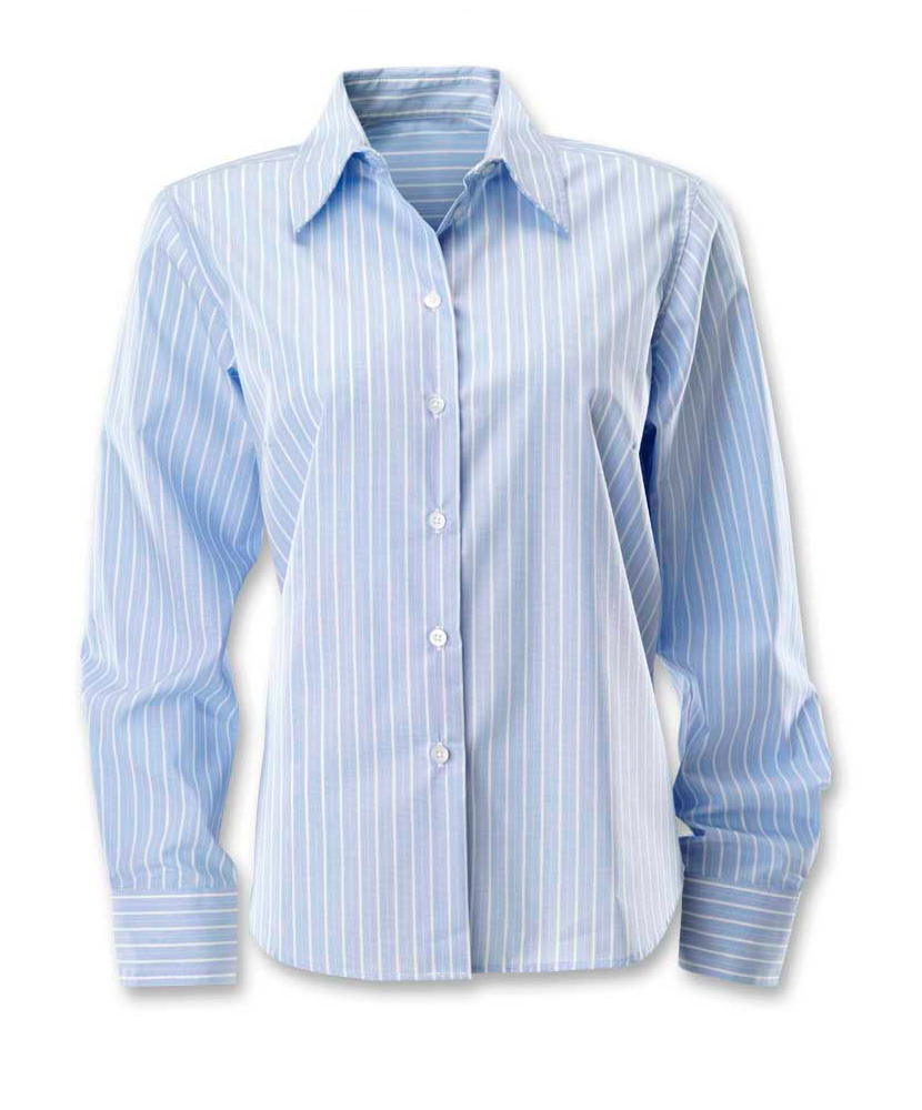 Classic collarFront button fasteningLong sleeves with button cuffs115gsm 60% cotton/40% polyesterUp to 40 washSizes 8 – 26