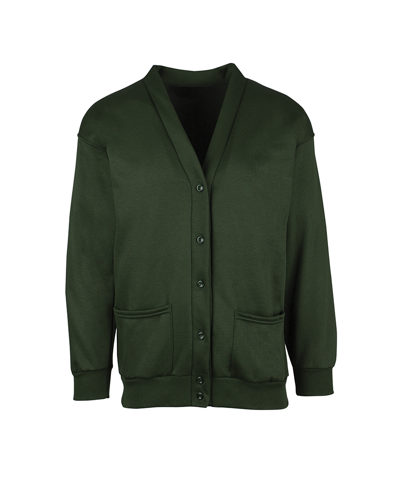 Button frontV-neck Two lower patch front pockets Ribbed cuffs (not turn back) Choice of colours 45% acrylic/40% cotton/15% polyesterBack length 70 – 84cm (increases with size)Machine washable up to 40