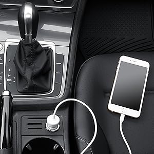 Lightweight and compact, the car charger provides a smooth straight cable that measures 3 feet long for flexible placement and use. The car charger delivers high-speed charging (2.4A output)—perfect for short commutes, long road trips, and everything in between.