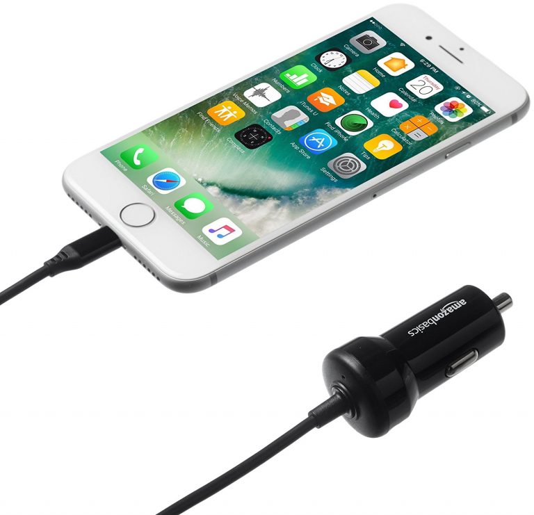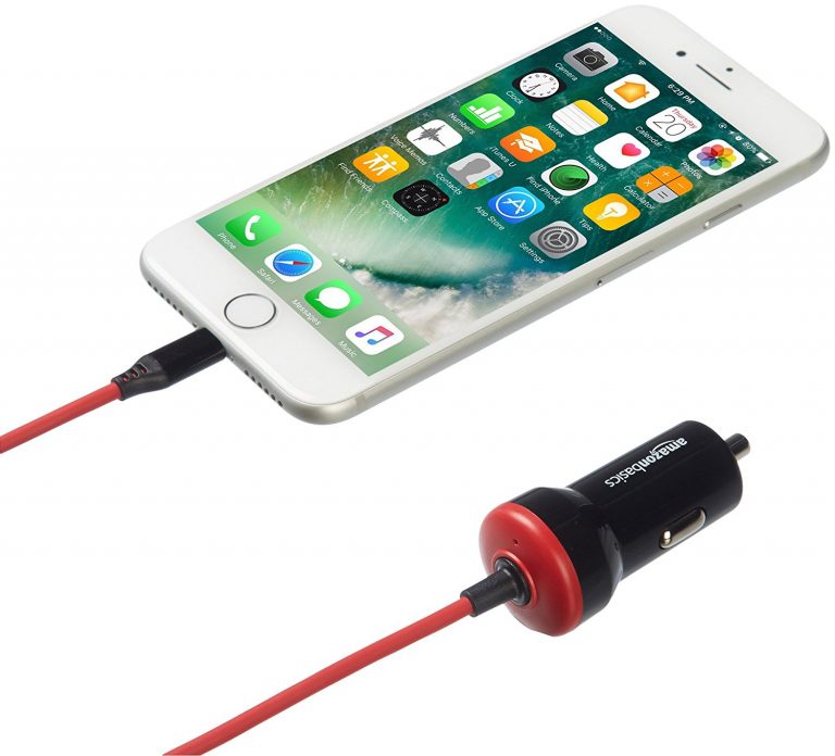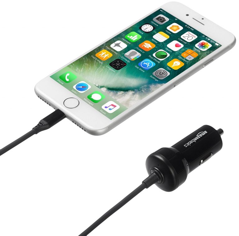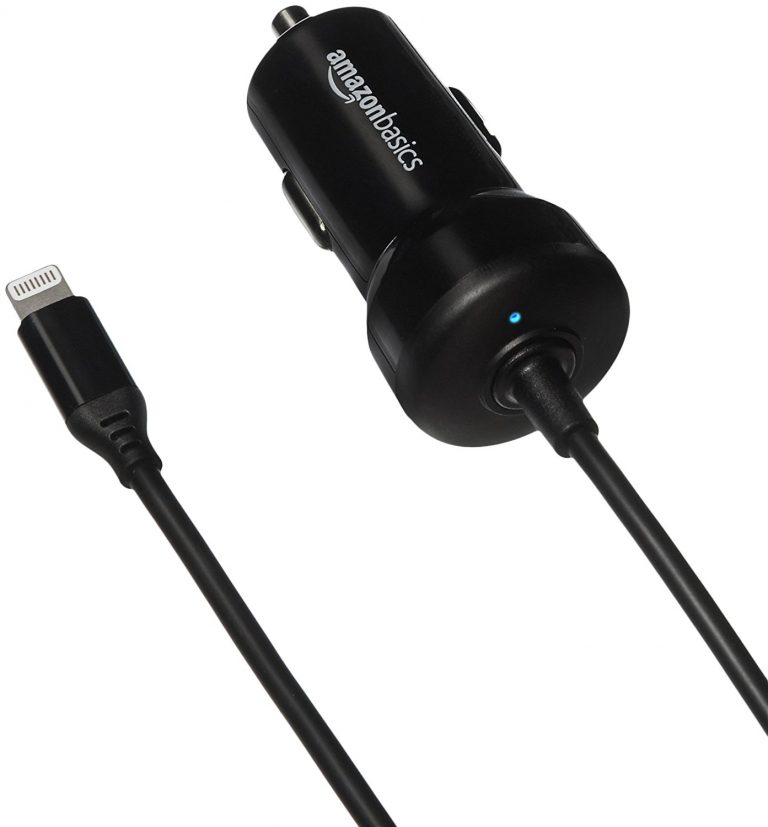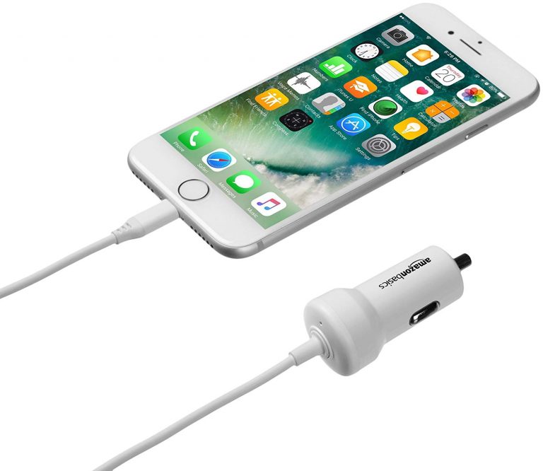 AmazonBasics 5V 2.4A Straight-Cable Lightning Car Charger
