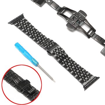 Black Stainless Steel Band Strap With Butterfly Clasp for 42mm Apple Watch