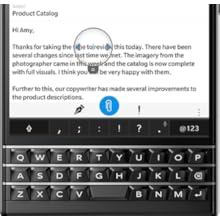 The new touch keyboardThe BlackBerry Passport takes our iconic keyboard to the next level. The physical keyboard gives you more typing accuracy and leaves you more screen space for viewing. It is also touch-enabled, so you can perform many functions right on the keyboard. It’s responsive to touch so you can scroll web pages, flick to type or slide along the keys to move the cursor. Only BlackBerry can take a perfectly crafted keyboard and make it better. |