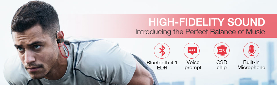 ● SUPERB SOUND Quality headset and Bluetooth V4.1+EDR for stereo sound and superb bass sound. Clear high & low volume. Best wireless earbuds sound.Bulit-in mic with voice notification of incoming calls
