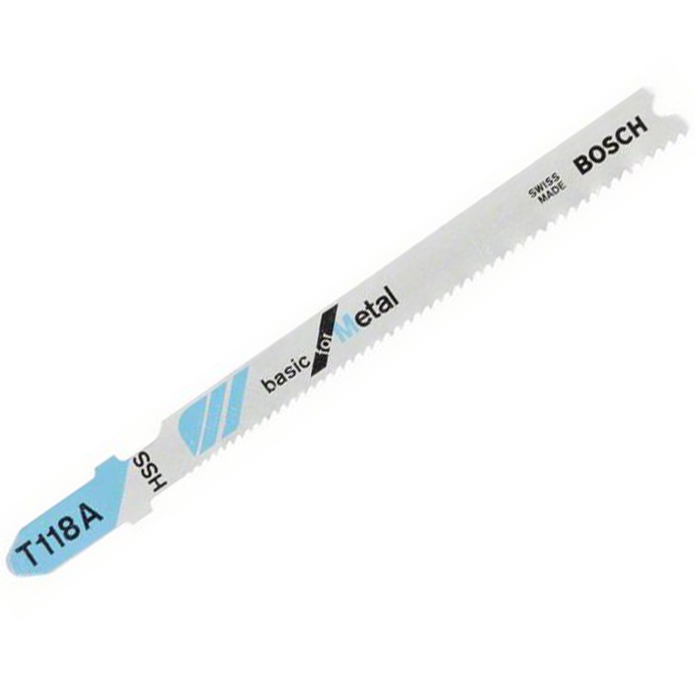 The Bosch T118A Blades are part of the “Basic for Metal” range. – HSS, Wavy Set & Milled – For Thin Sheet Metals (1-3mm) Specification: Total Length : 92mm Tooth Spacing : 1.1-1.5mm