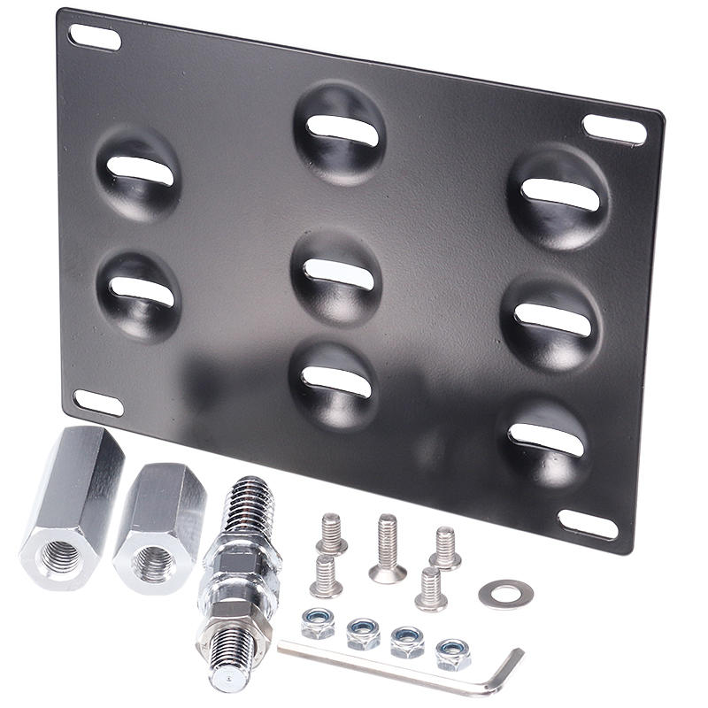Description:1.You can directly bolt on this bracket/adapter to your vehicles front bumper tow hole and have the license plate mount thereinstead of drilling and damaging the vehicles front bumper.2.Unlike most license plate adapters on the market that simply use black paint to cover a basic aluminum plate, iJDMTOY hasa specially crafted matte-finish, powder coated version of the license plate adapter that is now more durable with a longer lifespan.Feature:1.Black matte finish.2.Special powder coated rather than black painted.3.Easy installation.4.No drill or modification required.5.Screw in from the tow area/hole.6.8 mounting holes to ensure plate will not block the parking sensor or light.7.Come with angle adjustment for plates to follow the curve of the bumper.Specification:Product Name:License Plate MountingColor:As picture showsPlace of Vehicle:Front bumperCompatible Car Models:For BMW,For Benz,For Honda,For ToyotaPackage Included:1 X Car License Plate Mounting