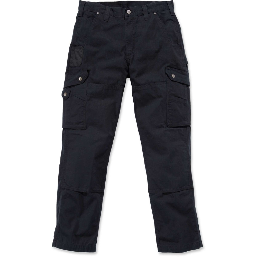 *Sizing Note* Carhartt are more generously sized you may need to consider dropping down a size from your traditional workwear clothing. Made to face tough days on the job the men’s ripstop flannel work pants from Carhartt have been expertly constructed from durable and strong 9.25 ounce pure cotton ripstop material – specially designed to resist rips and tears and featuring a soft and warm cotton flannel lining. Cut in a relaxed-fitting seat and thighs chap-style double-front construction with a multitude of handy utility pockets whilst the straight leg opening fits over work boots., 314 gram 100% cotton ripstop fabric., Sits slightly below the waist., Relaxed seat and thigh., High tenacity nylon-lined front ledge- and back pockets., Two large cargo pockets with flaps and snap closures.