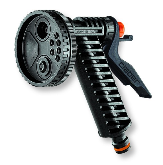 The Claber Spray pistol inchGarden inch is ideal for a verity of watering jobs around the garden. Featuring a wide range of flows, perfect for making watering simple. Choose from either soft fan, wise, gentle mist, shower spray or soaker depending on which level of flow you require for different tasks. The pistol is ergonomically designed and features a grip contoured insulated handle for comfort and a fingertip pressure control water button.